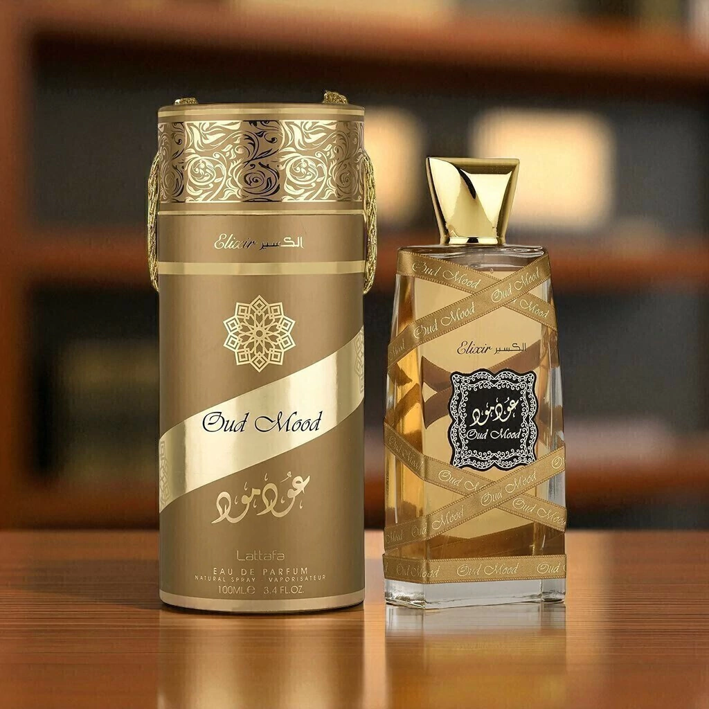 Oud Mood Elixir de Lattafa es una fragancia oriental unisex que destaca por su mezcla de notas especiadas y amaderadas, ofreciendo un aroma cálido y envolvente. Ideal para quienes buscan un perfume con profundidad y carácter, perfecto para ocasiones especiales.